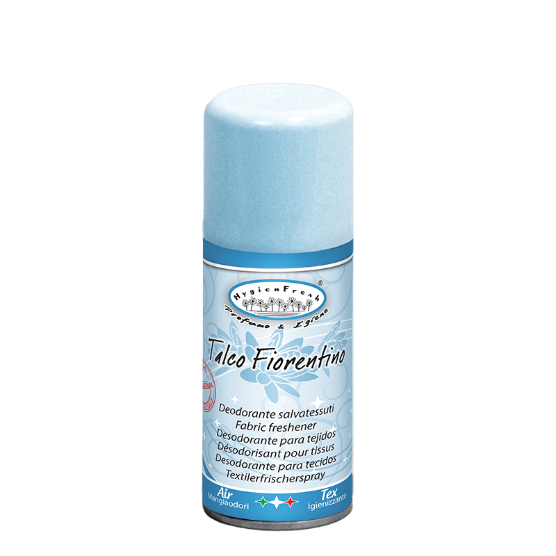 HygienFresh® Talco Fiorentino yra purškiamas kvapo gaiviklis, kuris neutralizuoja drabužių ar kitų namų apyvokos daiktų skleidžiamus nemalonius kvapus ar tiesiog suteikia gaivų kvapą. Malonus „Florencijos talko“ kvapas išlieka ilgai.